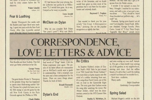 While doing some research I came across some letters to the “Correspondence, Love letters & Advice” page of Rolling Stone Magazine, Issue 158, April 11, 1974. They were comments about Hunter’s Fear and Loathing at the Super Bowl in issue 155 (Feb 1974). There is even a response to one from The Ed.. Enjoy. I’ll […]